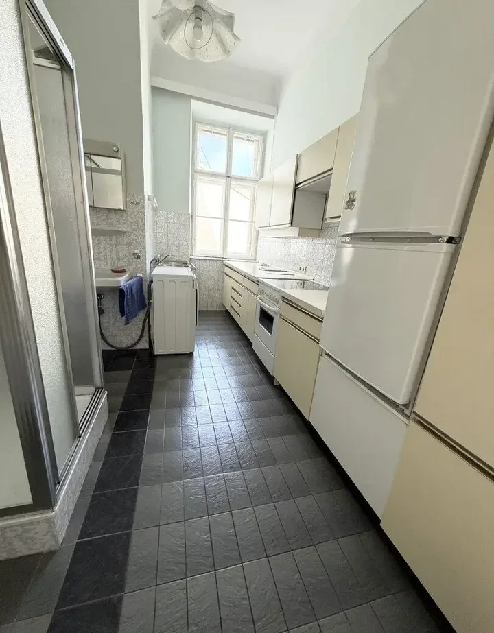 Helle Altbauwohnung im 2. Obergeschoss (mit Lift), ideal für Paare oder als WG. Hohe Decken und durchdachte Raumaufteilung schaffen ein freundliches Wohnambiente.